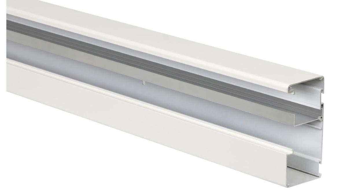 Väggkanal i återvunnen aluminium. Materialet är till 89% återvunnet varav 81% är konsumentskrot. Framställningen av materialet sker enbart med fossilfria energikällor. Kabelutrymmet kan med hjälp av mellanhylla delas i sektioner. I kanalen finns spår för jordningsbleck TBM 1.
