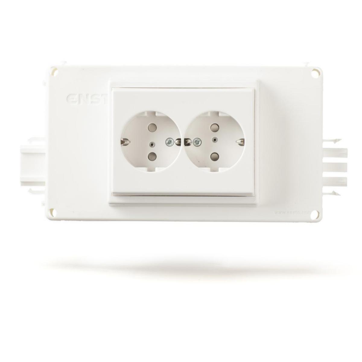 Med NAP304 uttagsboxen,förgrenas en 1-fas matning till 1 st 2-vägsuttag. Boxen kan fästas t.ex. på en monteringsplatta med 4 st skruvar från hörnen på boxen (C/C mellan hålen 174 mm och 94 mm). Boxen kan också fästas med snäppfästen för vilket det finns 4 st hål i dosans botten.