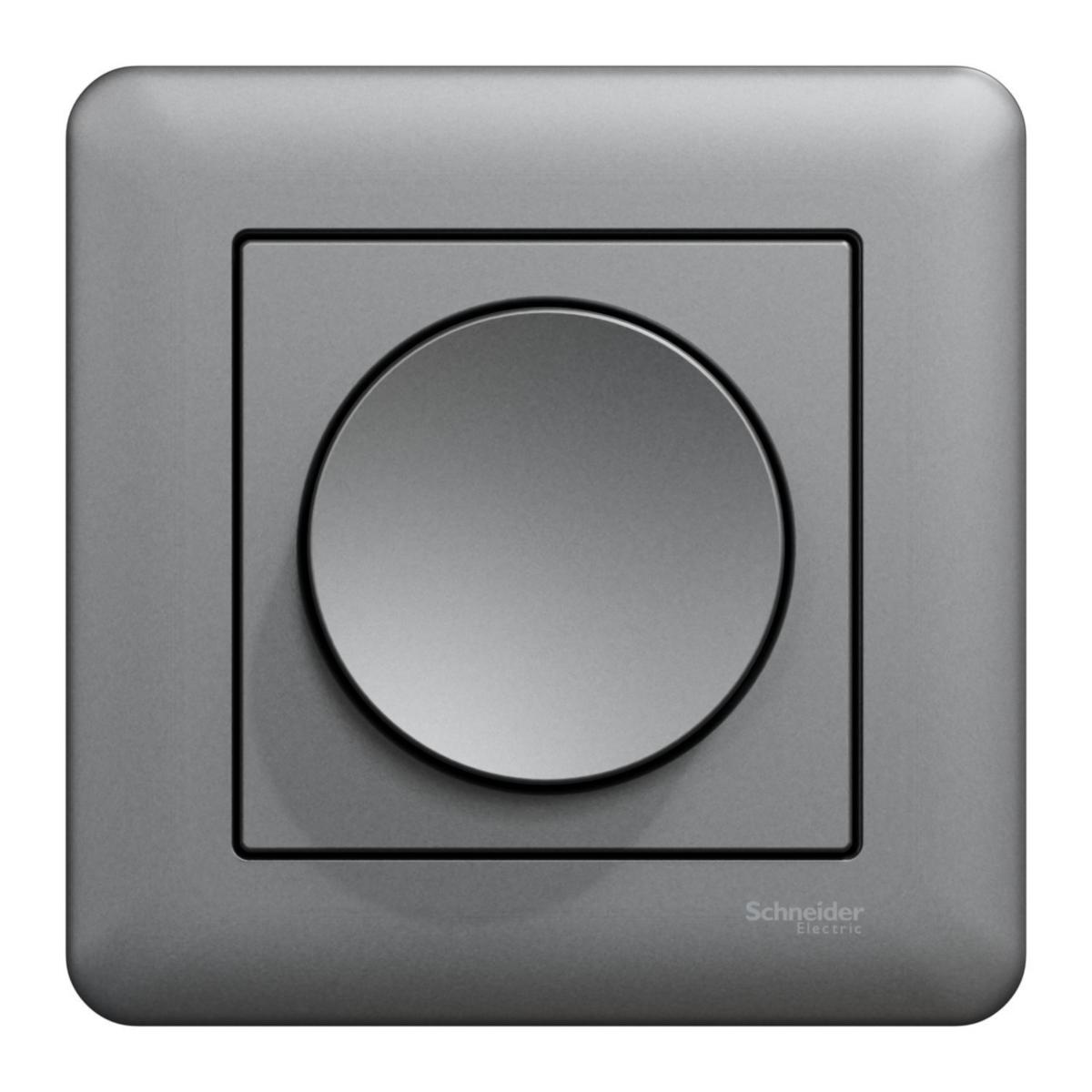 LED vriddimmer, 1-370W/VA för ljusreglering. Vid reglering av bakkantstyrd LED lampa (RC) 1-200VA. Glödljus, 230V halogenlampor (R) och de flesta typer av elektroniska (C) transformatorer 1-370W/VA, skruvanslutning. Med möjlighet att koppla in neutralledare för bättre dimningsprestanda särskilt för lägre belastningar ner till 1W. Utan neutralledare är min effekten 3W. Till- och frånslag via tryck på vred, trappomkoppling. För infällt montage i apparatdosa c/c 60mm, för utanpåliggande montage används dosa 35mm.. Levereras med Exxact Primo ram. Blisterpack Antracit