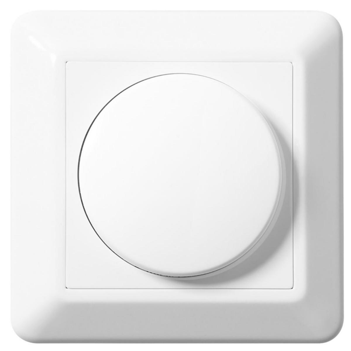 Vriddimmer 370VA LED RC. Reglerbar Min - Max. ljusstyrka. Pushingång för extern tryckknapp. Ingen nolla krävs. Men för stabilare/låg dimmernivå kan nollan anslutas. Montagedjup: 25mm. RS Renvit RAL 9003.