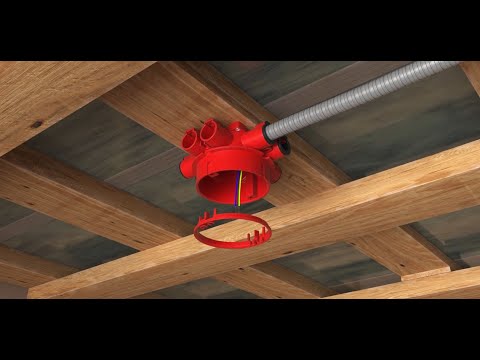 Takdosa Brandklassad för IE30 och IE60. Går att montera i enkel och dubbelgips 8-stutsar 16/20mm. "Borra hål 84 (max 86 mm), använd dosfräs T80. Dosan har två skruvtorn med ett avstånd på cc 70mm (för M4-skruvar), som passar alla standard lamputtag för tak. Den gröna ringen som medföljer dosan används i taket med en gipsskiva (12,5 mm) och ringen tas bort vid dubbla gipsskivor (2 x 12,5 mm). Om gipsskivorna är 15 mm tjocka används medfölrajnde röda adapter ringen. Lådan har ett öppnat inlopp för ett 16/20 mm rör, totalt 8 fasta inlopp. Tillverkad av halogenfritt material (IEC / 61249-2-21) uppfyller lådan IEC / EN60670: 2005 glödtrådstest (850 ° C)."