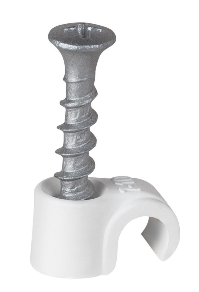 Skruvclips för att fästa kablar i de flesta grundmaterial inomhus och utomhus. Polypropylenclips med grovgängad skruv för olika grundmaterial och kabeldiametrar. Kan användas i alla grundmaterial. Beroende på grundmaterialet kan SCR monteras direkt, med ett förborrat hål eller kompletterat med en plugg, t.ex. Gripper All väggplugg. Har en skruv Ø 5,1 mm med PH2-huvud. Skruvlängder 33 mm och 40 mm. Passar även för utomhusbruk, korrosionsklass C3. Lämplig bits storlek: PH2