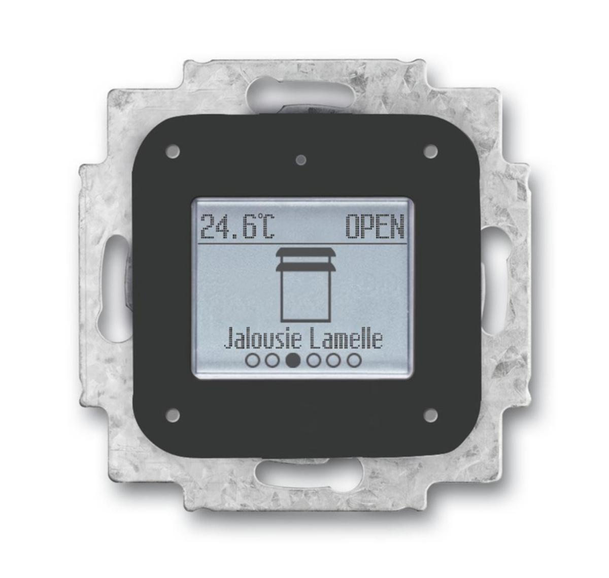 För styrning av upp till 6 olika funktioner med en valfri sjunde funktion som kan fungera som en förlängning av en annan rumstermostat. Symboler för olika funktioner och deras status visas via displayen samt den uppmätta temperaturen. Bläddring mellan olika funktioner via tillhörande centrumplatta 6108/61-XX. Möjlighet till primärfunktion.