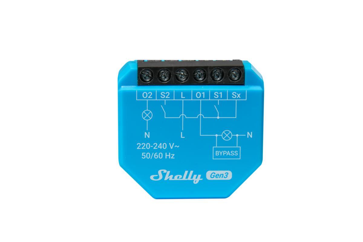 Shelly 2L Gen3 är ett WiFi-styrt 2-kanalsrelä som fungerar utan nollledare och är särskilt lämpligt för styrning av belysning där det inte finns någon nollledare bakom strömbrytaren.