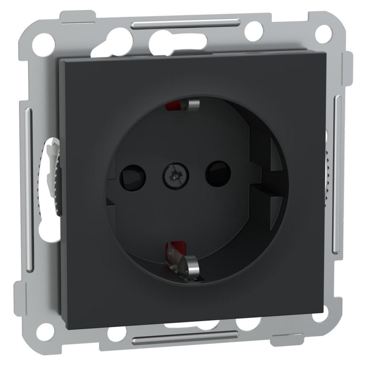 Vägguttag RS, Plus, 1-vägs, jordad, svart utan ram