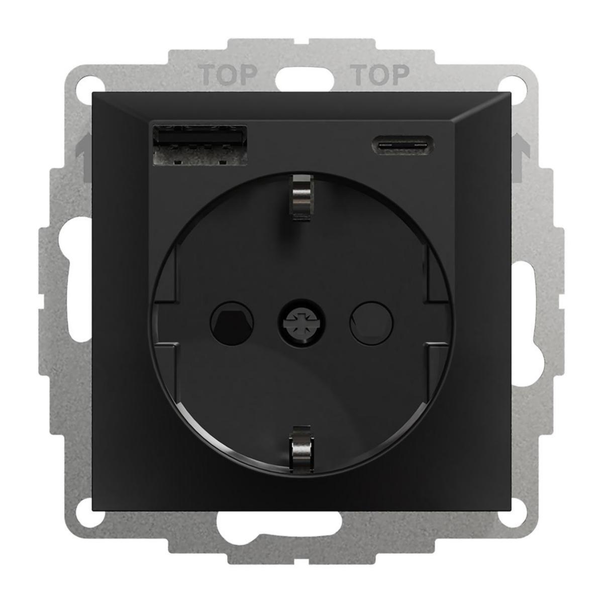 Kombinerat ladduttag med USB av både typ A och typ C och 1 st Schuko uttag. Produkt passar i jordade anläggningar. Laddström maximalt 3.0A USB-C , 2,4A när USB-A port som används. Automatiskt överlast-, termiskt & laddningsskydd. Uttaget levereras utan täckram. Elko Plus.