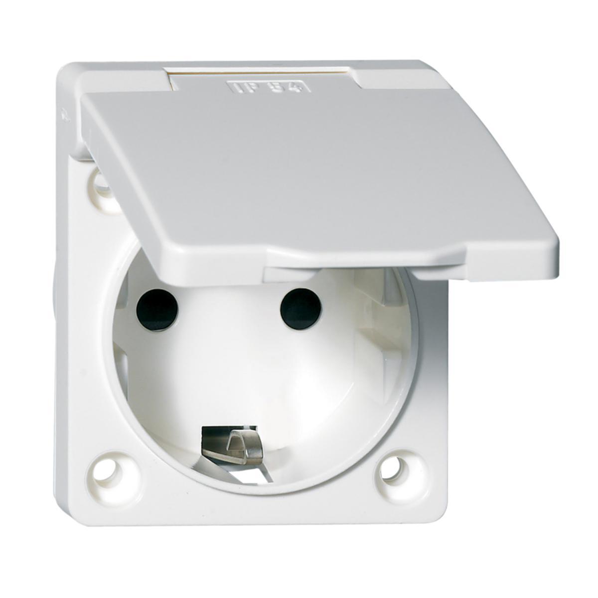 Inbyggnadsuttag 1-vägs, jordat, IP54, vit