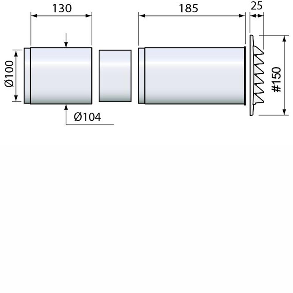 Komplett genomföringspaket för yttervägg, innehåller kallrasskydd, ytterväggsgaller #150 samt modulrör Ø100/104 mm. För anslutning till fläktar med stos Ø98-100 mm. Passar väggtjocklek upp till 310 mm, vid tjockare vägg komplettera med extra modulrör.