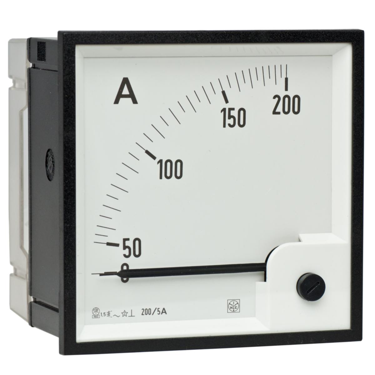 Analog amperemeter för mätning över stömtransformator. Panelmontage. Mätnoggrannhet 1,5% . Flatstiftsanslutning.