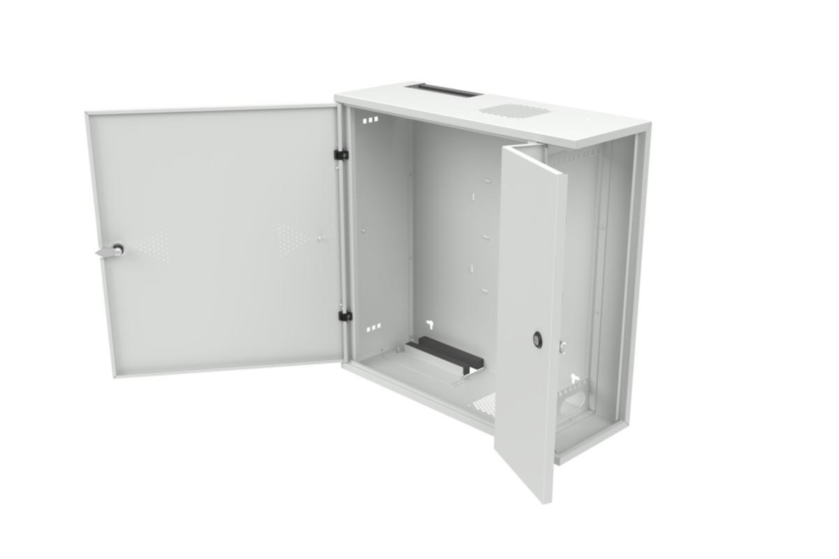 NSHV är ett utrymmessnålt väggskåp för små nätverksinstallationer eller installationer i kontorsmiljö. Med 19" montage vertikalt, uppnås 4 HE i ett skåpdjup på endast 220 mm.