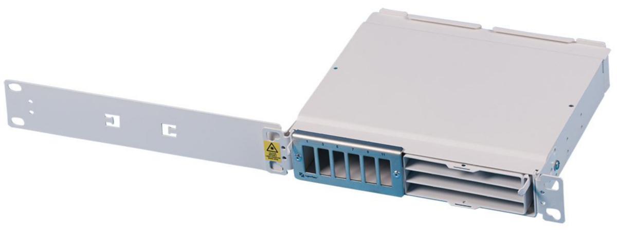 "Utdragbar ODF för 10-19"" mekanik. Kabel: max 11 mm, ingång i bakkant även möjligt med Höger eller Vänster intag Fronten som är gjord av rostfritt stål är frihängande och utdragbar 87 mm är komplett med skarvhållare för enkel-och ribbon, fiberhållare och hållare för fan out hylsor. Kan monteras på vägg."