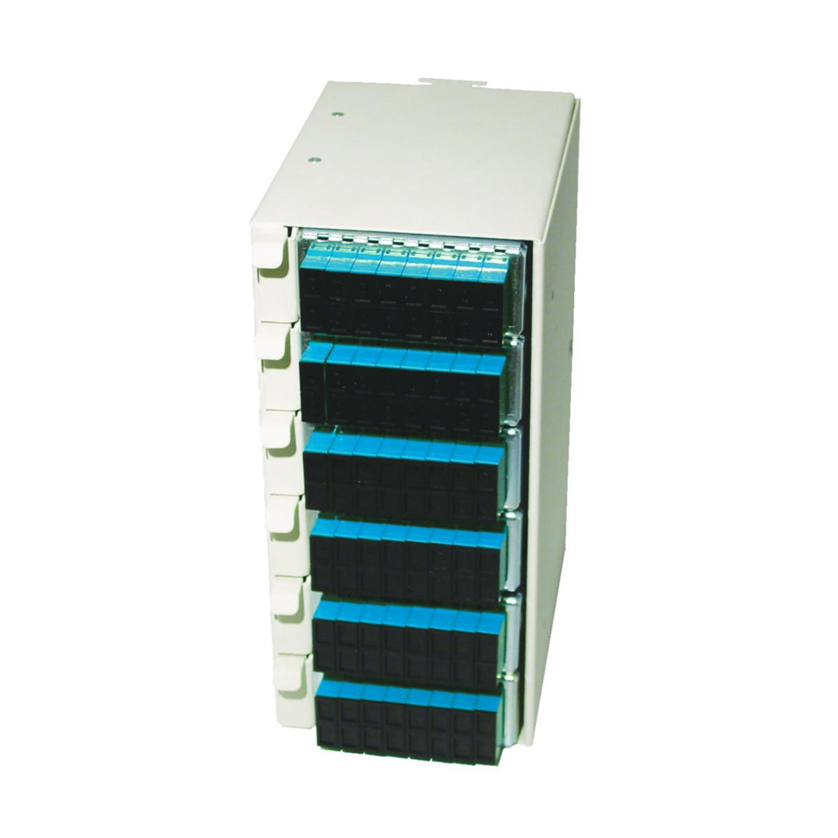 Förkontakterad fiberoptisk korskopplingsbox med fanouter av typ N3S. Korskopplingsboxen levereras förkontakterad med 48 eller 96 fibrer (6 eller 12 fanouter) med kontakttyp och prestanda SC/UPC. Boxen levereras komplett med panelplatta, mellanstycken, kontakter, fästdetaljer och kabelinfästning.
