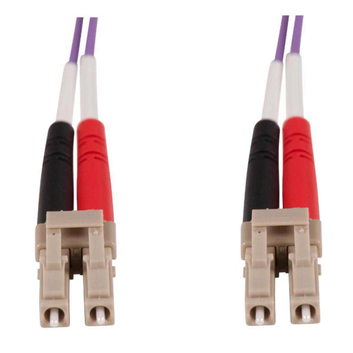 Fiberoptiskt korskopplingskablage lila 2mm, multimode 50/125µ OM4 med 2 fibrer (Duplex). Kablaget är halogenfritt och är individmärkt och har full spårbarhet. IL <0,2dB.
