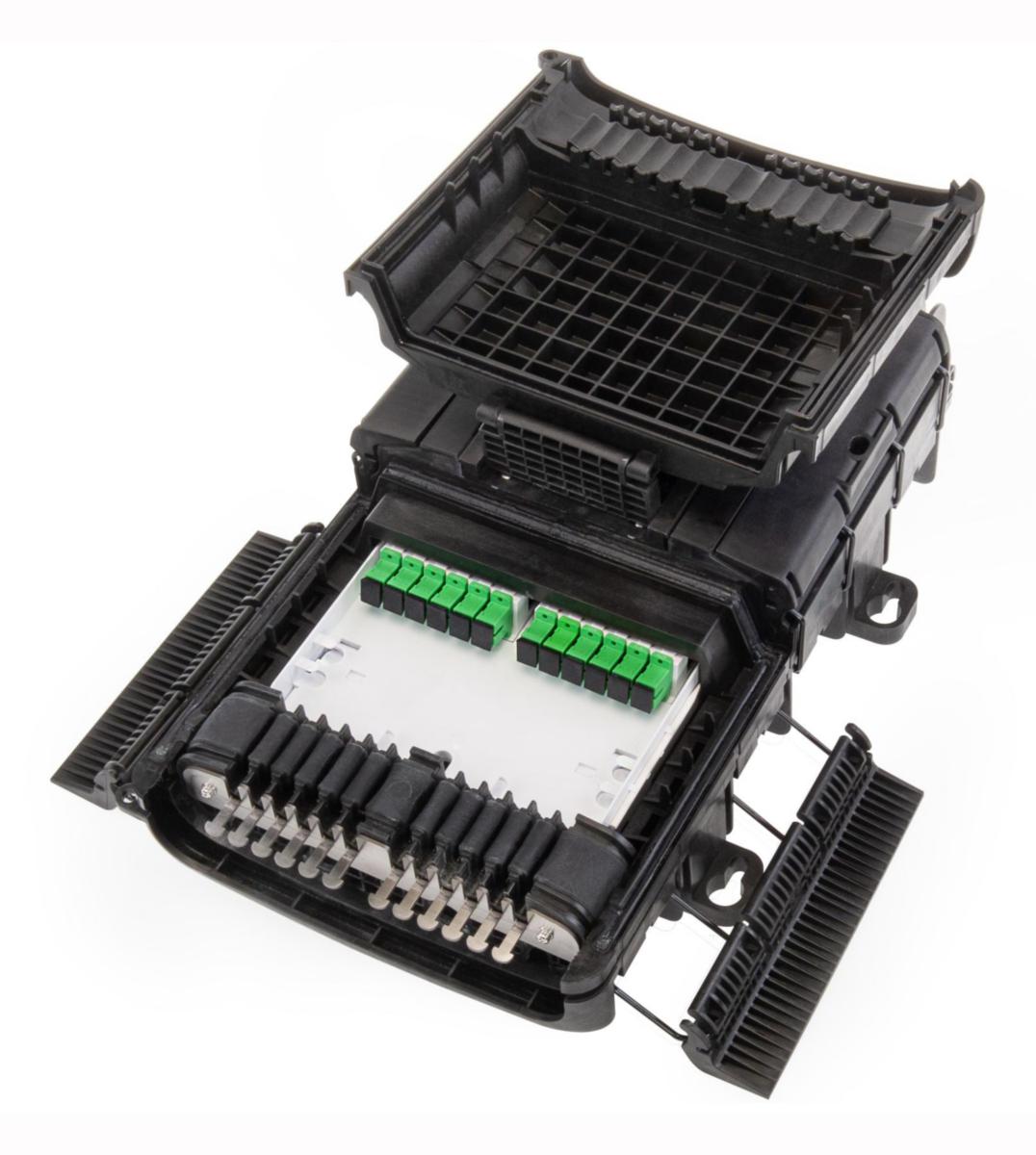 OFDC-C12 Är en mellanstor skarvbox för upp till 96 fiber , 2st skarvkassetter a: 48 fiber ingår. Kapslingsklass IP68