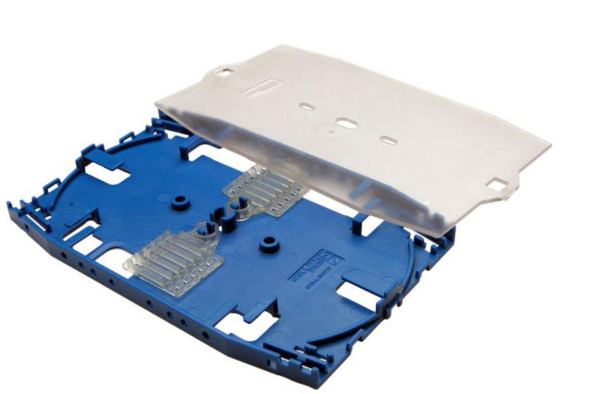 Skarvkassett 12F används för att slinga upp fiberöverskott, skydda och fixera svetshylsan. Kassetten kan monteras i ODF:er och skarvboxar. Hållare för svetshylsor, lock och dragavlastare beställs separat. Varje kassett rymmer två hållare och varje hållare rymmer 6 stycken svetshylsor