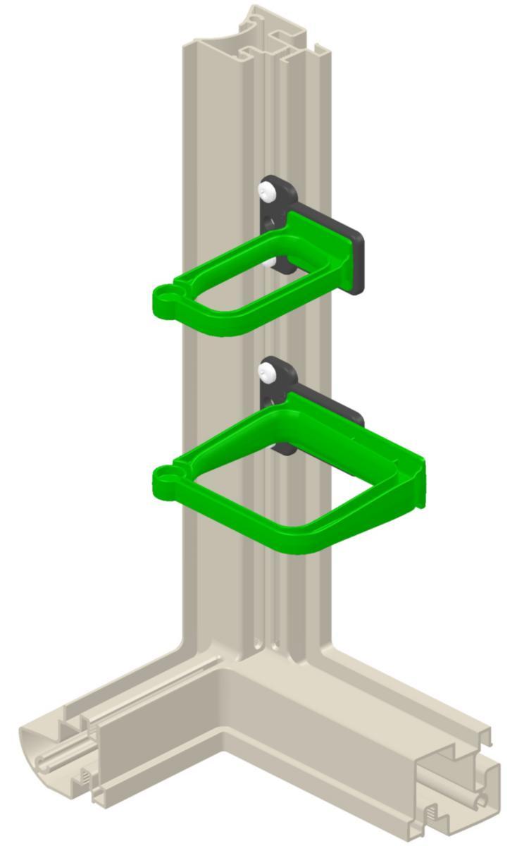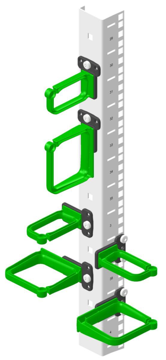 Kabelbyglar av plast, för kabelrangering. Kan monteras längs 19-tumsprofilerna eller i F1/S1-hörnstolpen. Samtliga material är fria från halogen och klorföreningar. Brandsäkerhetsegenskaper i enlighet med IEC 60695-11-10/UL94. Inklusive fästskruvar för montering i hörnstolparna. Säljes i par.