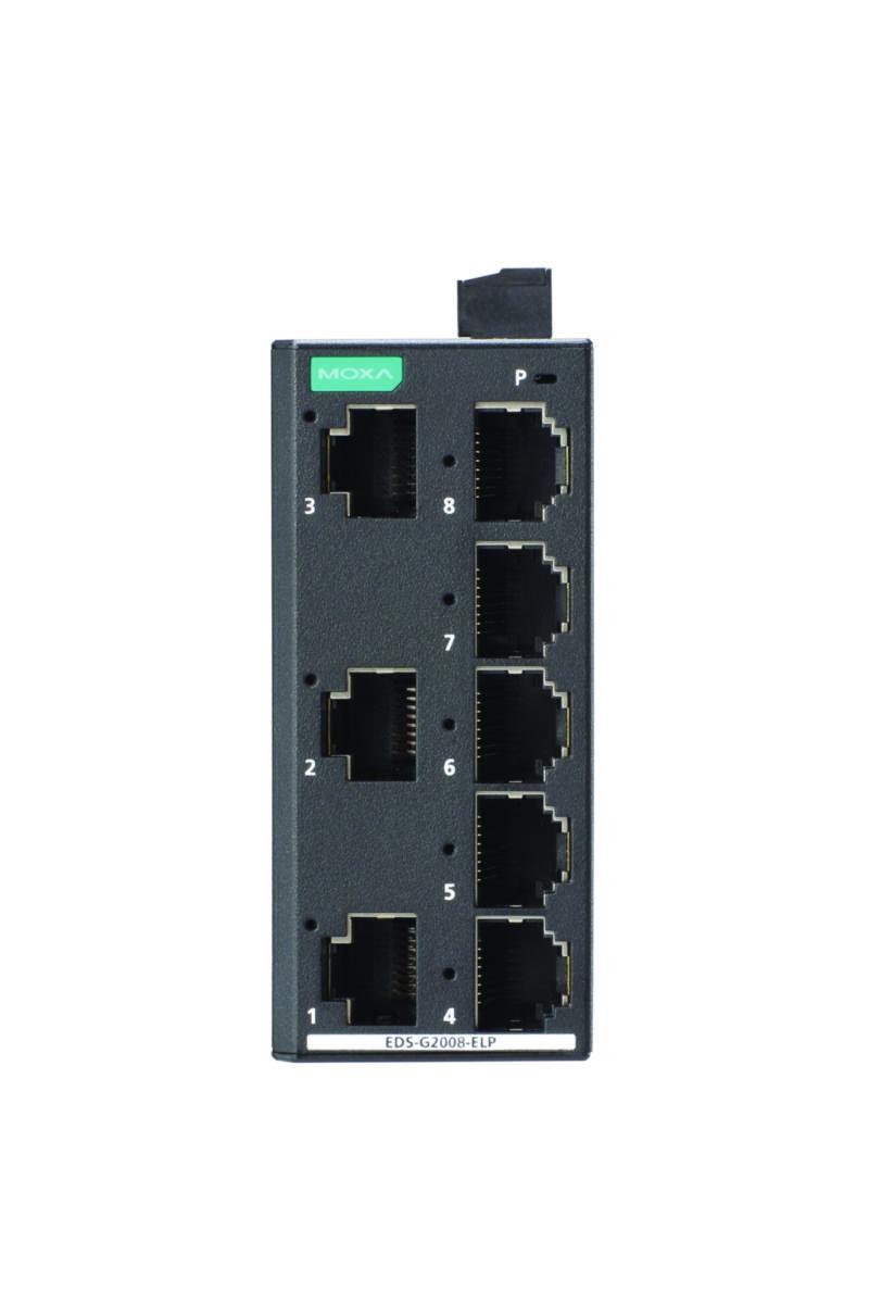 EDS-2008-EL-serien av industriella Ethernet-switchar har 8 10/100M kopparportar, vilka är idealiska för applikationer som kräver enkla industriella Ethernet-anslutningar. En variant har 7 10/100 kopparportar + 1 Fiber. Dessutom tillåter EDS-2008-EL-serien användare att aktivera eller inaktivera Quality of Service (QoS)-funktionen och broadcast storm protection (BSP) med DIP-switchar på den yttre panelen. Dess robusta metallhölje gör att den passar för användning i industriella miljöer. EDS-2008-EL-serien har en enkel ströminmatning på 12/24/48 VDC, DIN-skenmontering och hög nivå av EMI/EMC-kapabiliteter. Förutom sin kompakta storlek har EDS-2008-EL-serien genomgått en 100% bränntest för att säkerställa att den fungerar pålitligt efter installation. Serien har en standard driftstemperatur på -10 till 60°C, med modeller för bred temperatur (-40 till 75°C) också tillgängliga . Samma serie finns även som EDS-2008-ELP och har då plasthölje.