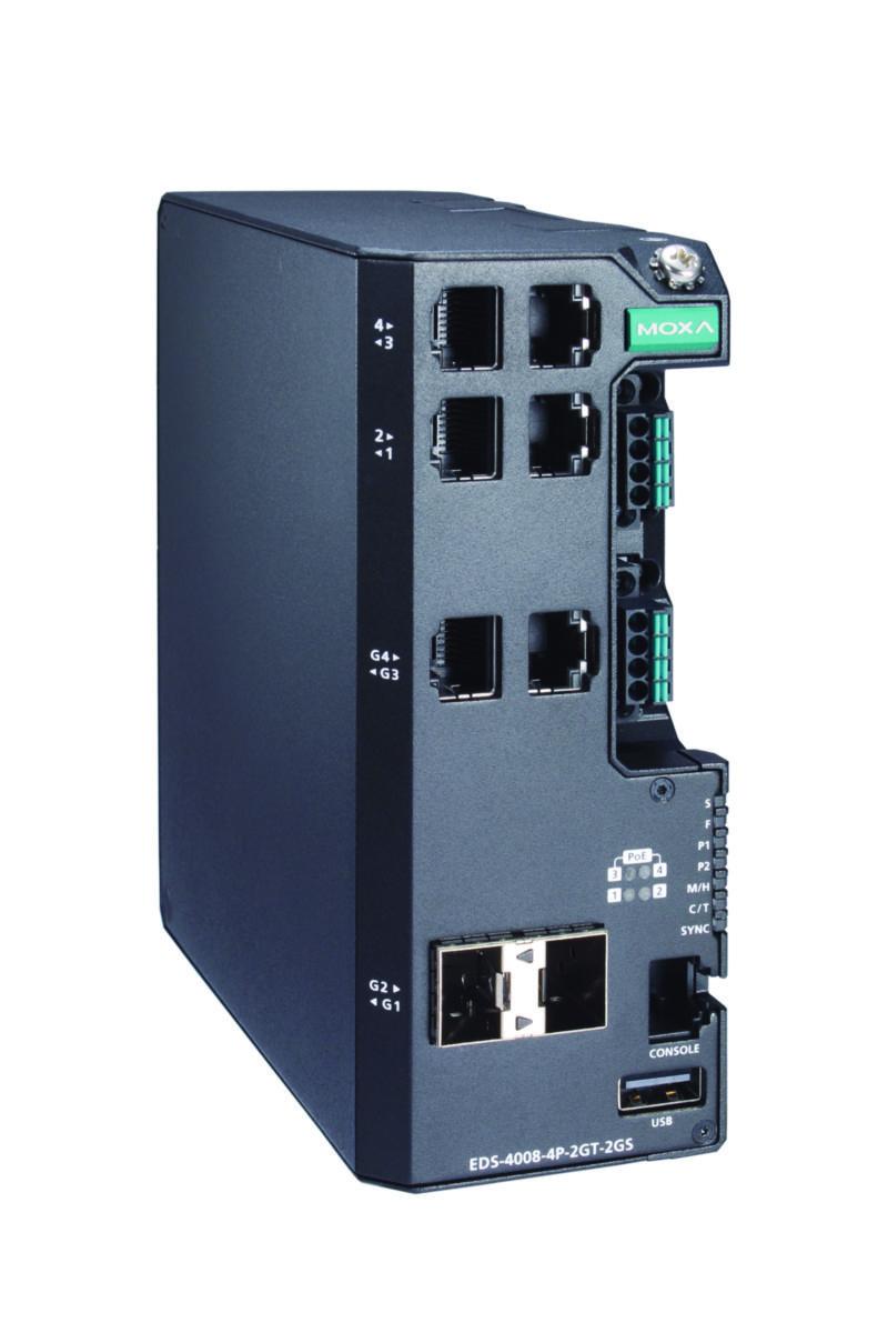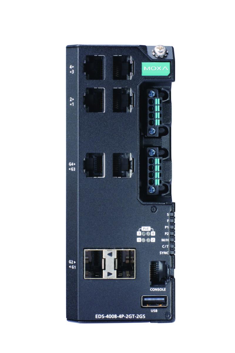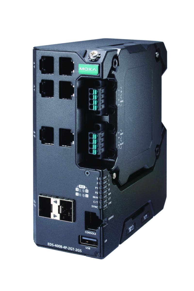 EDS-4008-serien är en serie 8-portars hanterade Fast Ethernet-switchar med möjlighet till fyra 1 Gbps upplänksportar eller två 100M ST/SC fiberoptiska portar. Den här serien erbjuder även modeller med fyra 10/100BaseT(X) 802.3af (PoE), 802.3at (PoE+) och 802.3bt-kompatibla Ethernet PoE-portalternativ för att ansluta högbandsbredd PoE-enheter.