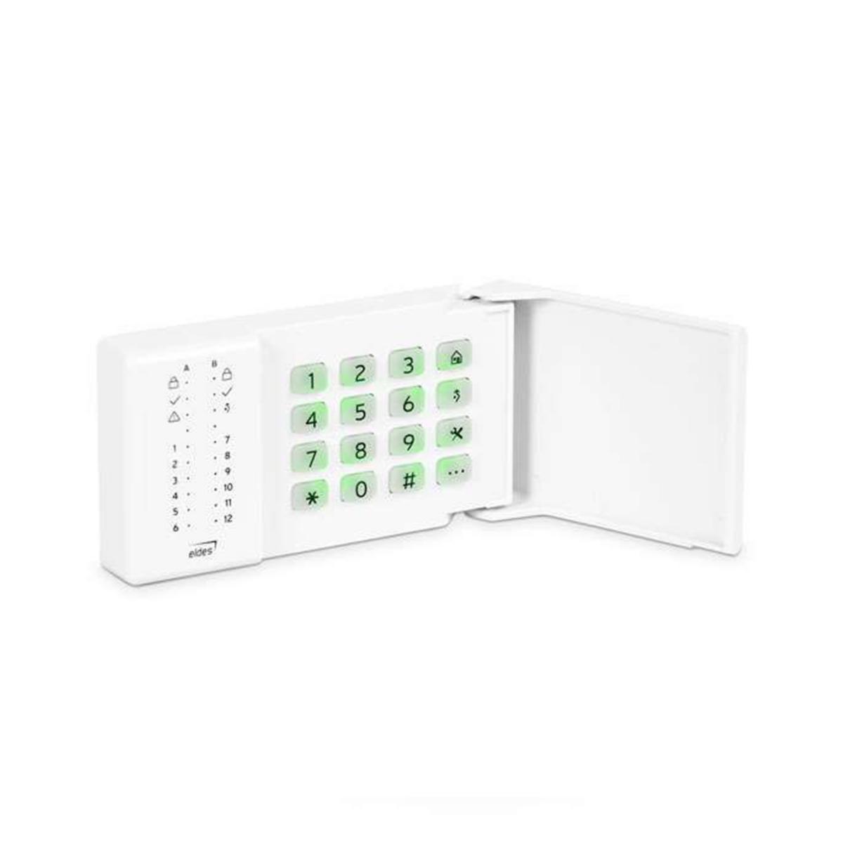 Bakgrundsbelyst knappsats med trådlös anslutning till ESIM484, säker överföring på 868 MHz bandet. Täcker även stora byggnader, upp till 300 kvadratmeter. EWKB4 är en trådlös knappsats där attraktiv design möter användarvänlighet. EWKB4 möjliggör både konfiguration av larmcentralen och möjligheten att aktivera och deaktivera larmet via bekväma och plana bakgrundsbelysta tryckknappar. Denna knappsats är utrustad med 16 knappar och 18 LEDs för bakgrundsbelysning och indikering samt summer för ljudindikering. Den integrerade ljudsignalen informerar om olika funktioner samt räknar ned vid in- och utpassage.