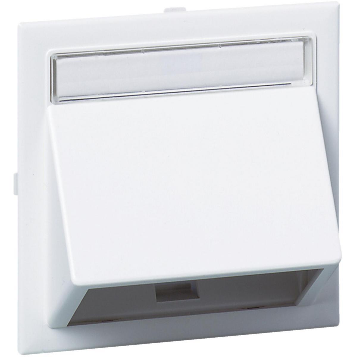 Snäppfastsatt vinklat datalock med etikett, etikettfönster samt montageram för montering i Thorsmans kanaler och stavar med 80 mm frontöppning. Monteringsbricka för kontakter beställes separat.