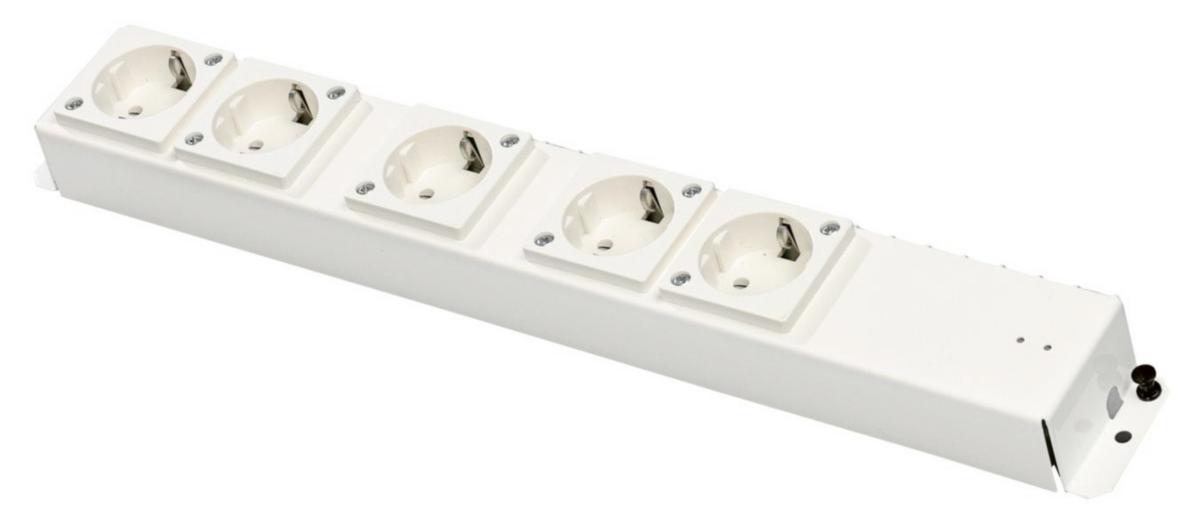Grenuttag med 5 schukouttag, passande media monteringsplåt som trycks fast i plåten med enkel snäppteknik.