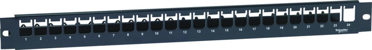 Fast patchpanel för Actassi skärmade och oskärmade S-One och DPM jack, som monteras direkt i panel utan tillbehör. Fast portmärkning 1-24. Kan kombineras med Actassi vertikala kabelguider. Mörkgrå RAL 7016.