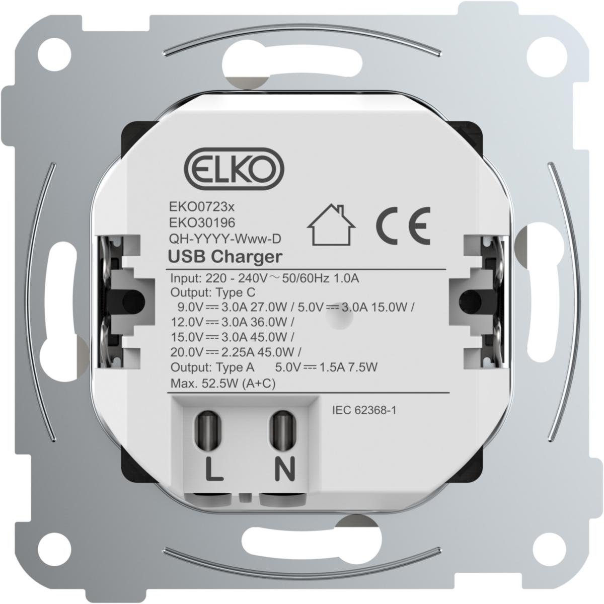 USB typ A och typ C med ny högeffektiv insats på 45W som möjliggör förbättrad laddning av både mobila enheter och bärbara datorer. Med Power Delivery möjliggör att laddspänningen anpassas efter anslutna enheter till 5-9-12V eller 15- 20V. PD är en smart lösning för snabbladdning av dina enheter. Laddar en eller två enheter samtidigt. Standard USB A: 1.5A, USB C: 3,0A. Utspänning 5V=(+/- 5 %). Levereras utan ram för infällt montage i apparatdosa eller för utanpåliggande montage i förhöjningsram eller hörnbox. Montagedjup 31 mm.
