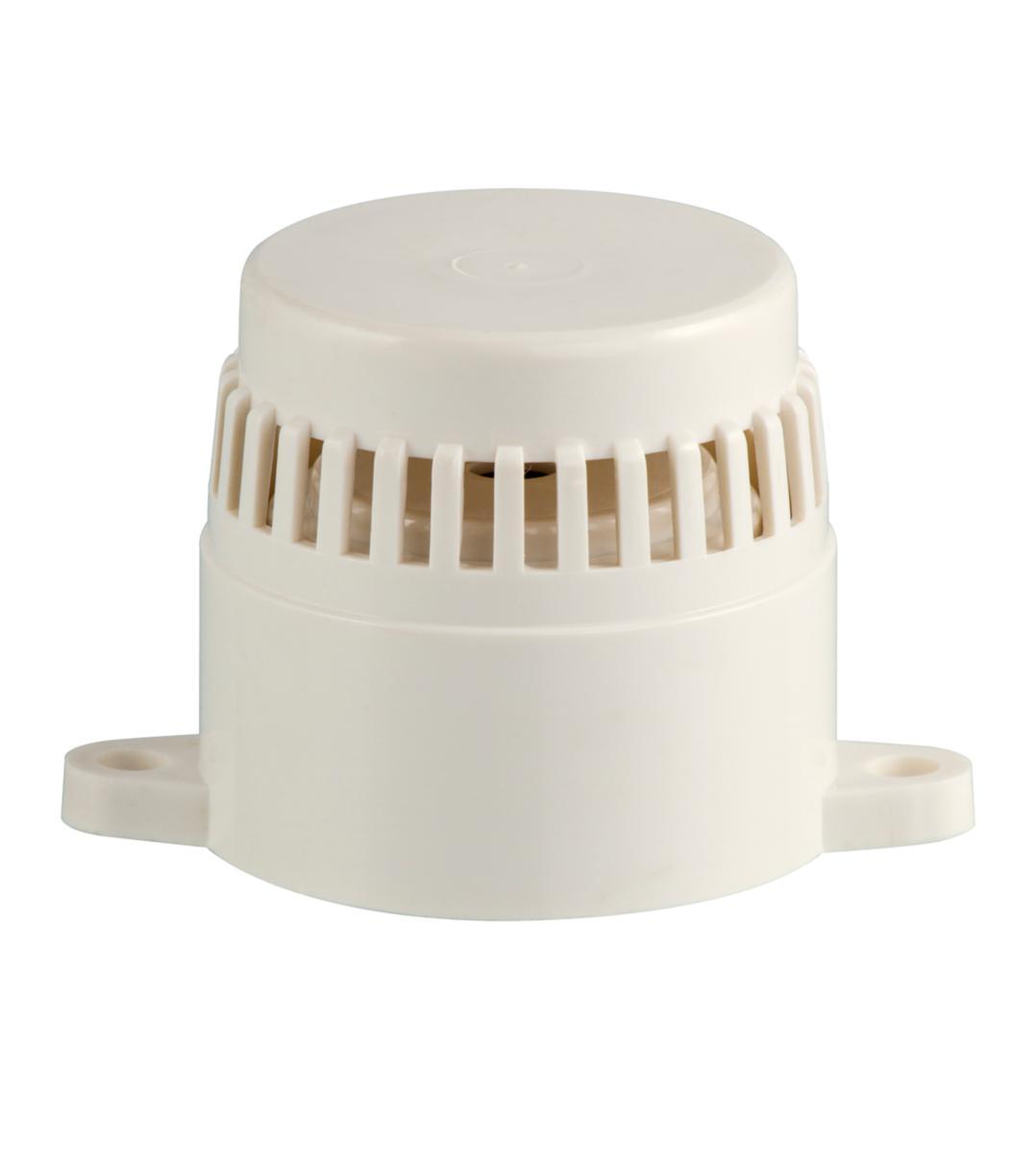 Piezosummer - AE35M - Ljudutgång 92dB - Pulserande eller kontinuerlig ton - 5-28vDC - Ytmontering - Off-white ABS-plast - Frekvens 3200Hz - IP30 - Diam Ø50 x D 46mm.