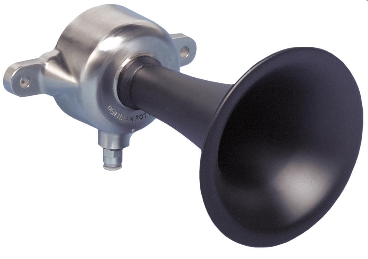Acoustic signal - Luftdriven sirenTDE - Sound output 116-138dB - 316 Rostfritt stål membrane & brass horn in matt black finish - IP66 - Diam Ø130 x D 198mm.