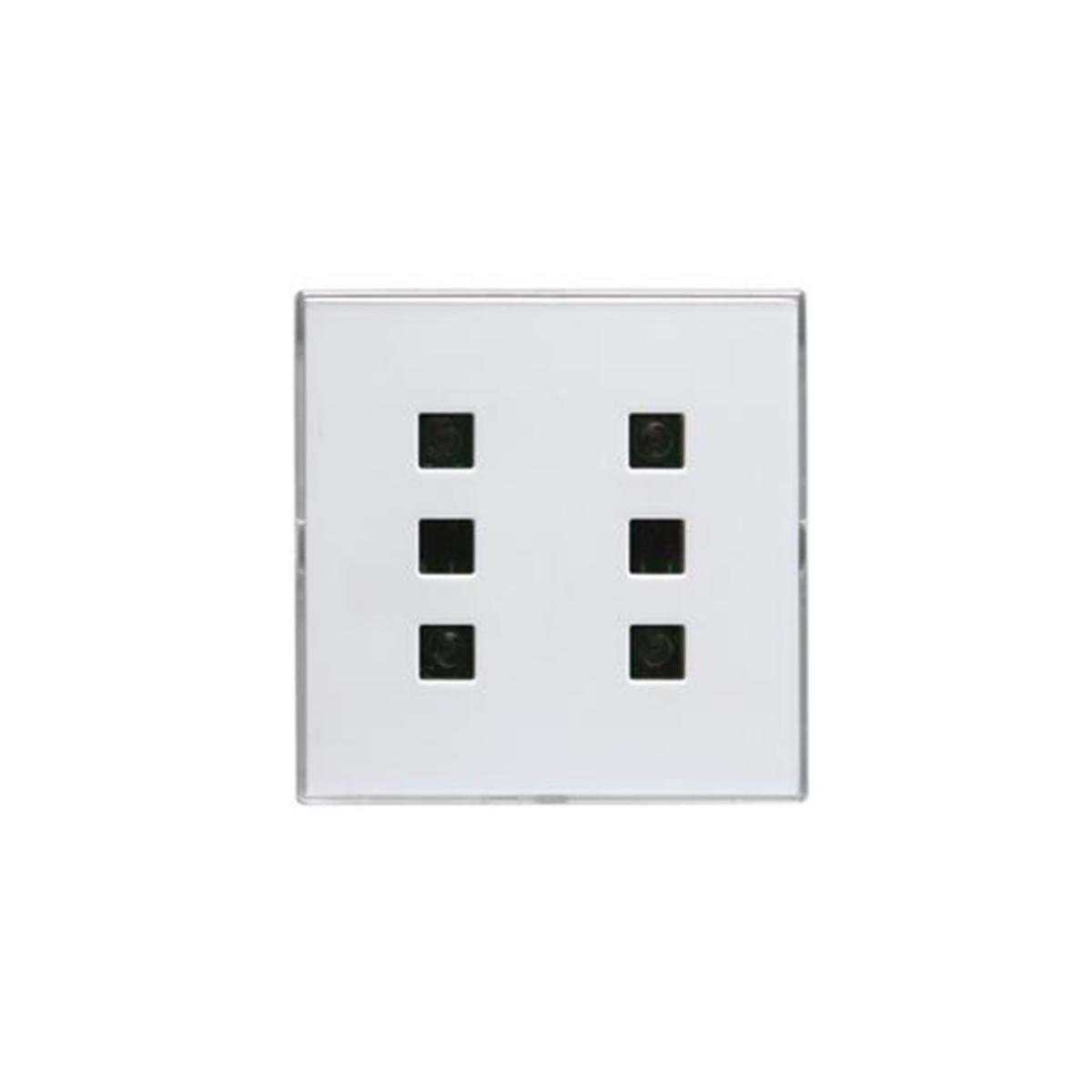 Impressivo centrumdelar för Jussi-signalprodukt: FIM1300. Innehåller de delar som behövs för att ändra Jussi-seriens signalprodukt till motsvarande produkt i Impressivo-serien. Markeringsmöjlighet under det stora linsskalet. Vit.