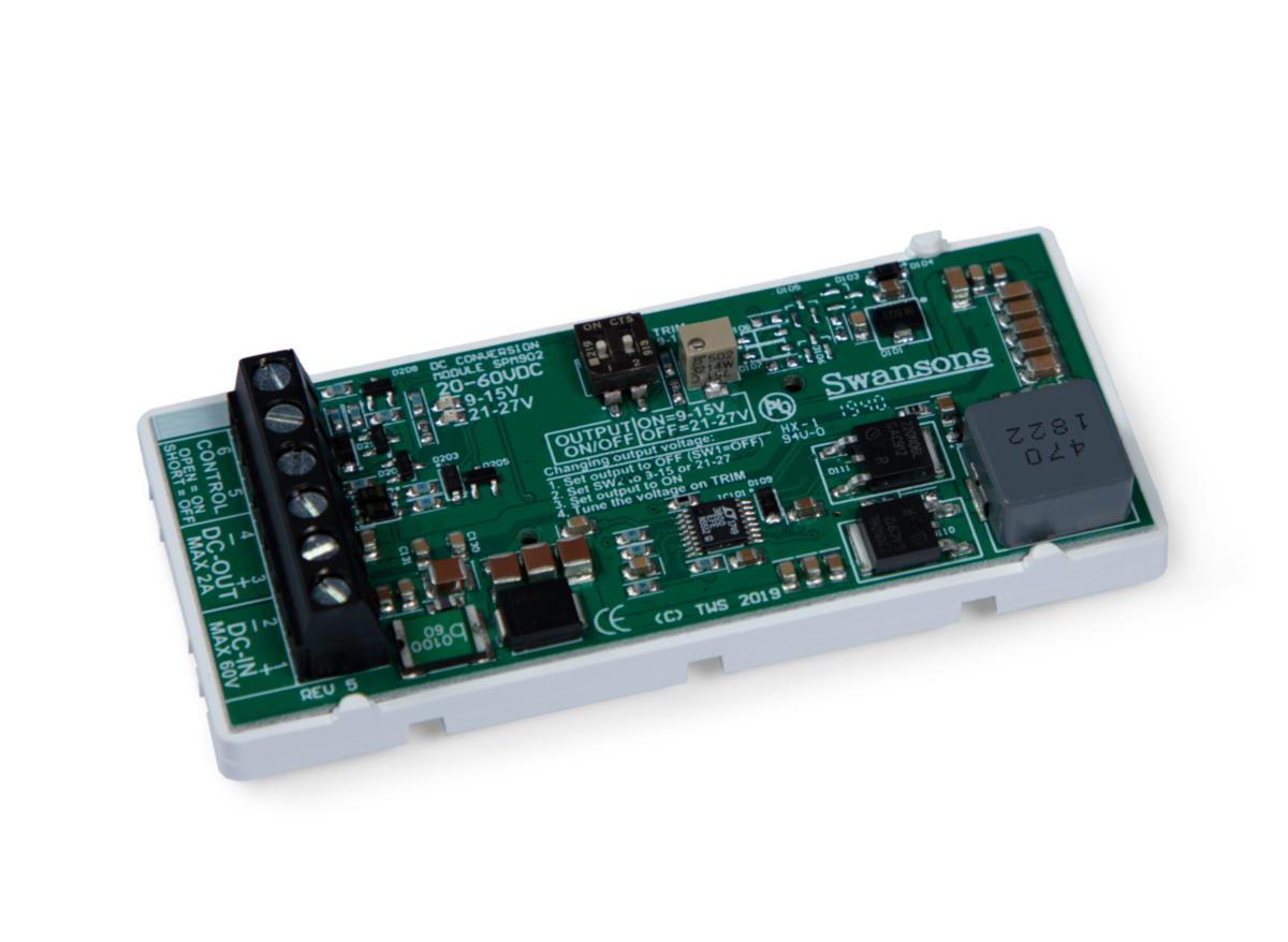 24-60V inspänning med antingen ett 12V- eller ett 24V-område som kan finjusteras med trimpotentiometer. Idealisk att använda i PoE-aggregat för att driva icke PoE-driven utrustning. Anslutningsplintar för inkommande spänning, utgående spänning samt för avaktivering. Indikering med lysdioder.
