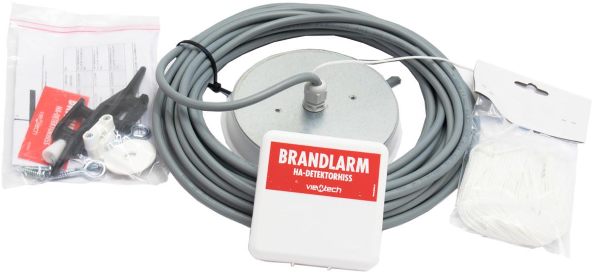 Hissanordning för montage av branddetektor i svåråtkomliga utrymmen såsom hisschakt, glaskupoler, trapphus, idrottshallar mm. Levereras med montagedetaljer samt 12 m kabel 4x0,8 och 20 m nylonlina.