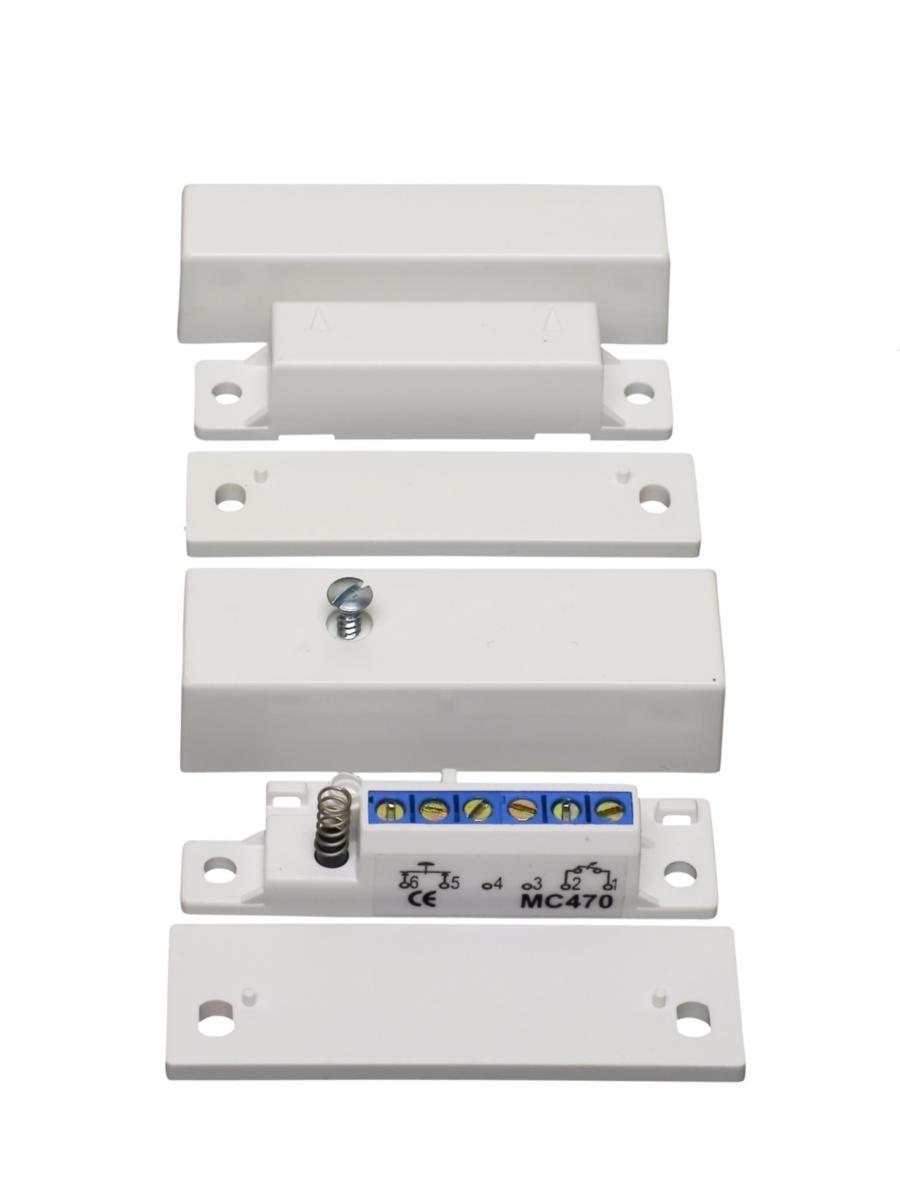 Högsäkerhetskontakt med NC funktion och sabotagekontakt samt öppningsskydd, för utanpåliggande montage. För snabb och enkel montering har den skruvplint med trådskydd. Vit plast. Kontakten kan med medföljande plastdistanser monteras på stål. Montagevinklar MC L och MC Z finns som tillbehör samt extra plastdistanser MC 400-3 för kontaktdelen och MC 400-4 för magnetdelen.
