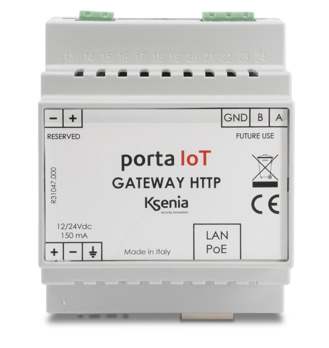 porta IoT är en enhet utformad för att gränssnitt med lares 4.0 på ett snabbt och enkelt sätt, utan att använda, i de flesta fall, SDK-integrationer. Detta är möjligt tack vare https API som exponeras genom porta IoT som ger chansen till exempel: