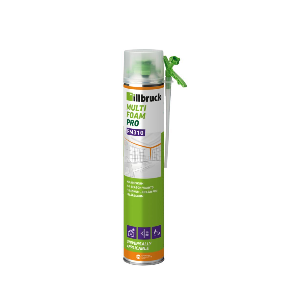 1-komponent fukthärdande polyuretanskum för helårsbruk. Skummet levereras i tryckbehållare med HFC-fri drivgas och "2 i 1" ventil. Fyll utrymmet < 80 % med pistol eller < 60 % med munstycke.