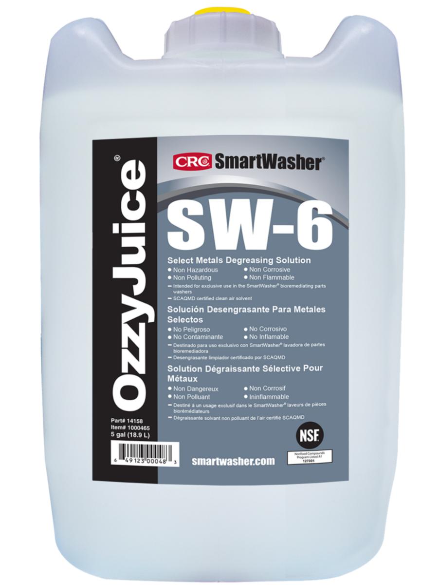 SW-6 OzzyJuice® avfettningslösning är en unik blandning av pH-neutrala emulgeringsmedel och tensider som inte innehåller några lösningsmedel. Den blandas i flytande form för att producera ett icke-farligt, icke brandfarligt avfettningsmedel. Livsmedelsklassad NSF A1. Utmärkt på bl a hydraulisk transmissionsvätska, motorolja, fordonsfett samt hartsprodukter.