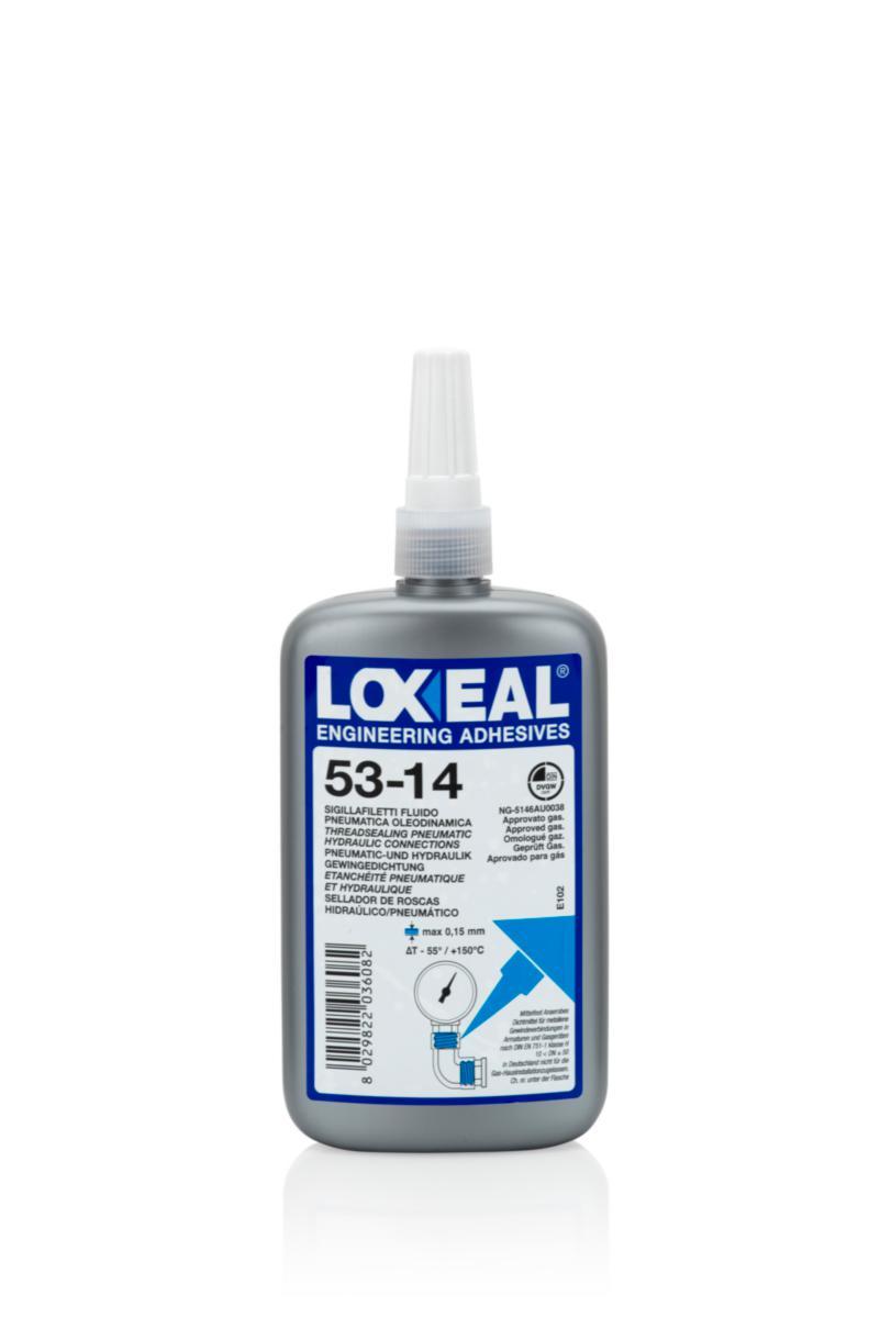 Medelstarkt anaerobt lim för tätning av hydraulik & pneumatikgängor samt kopplingar och små rör upp till 3/4". Gängtätning är effektiv mot gaser, vatten, oljor, LPG och många olika kemikalier. Loxeal 53–14 har hög resistens mot både värme, tryck, korrosion och vibrationer. Har gasgodkännande (DIN-DVGW). Produkten är hälsa & miljövänlig, då den inte har några märkningspliktiga ämnen eller piktogram.