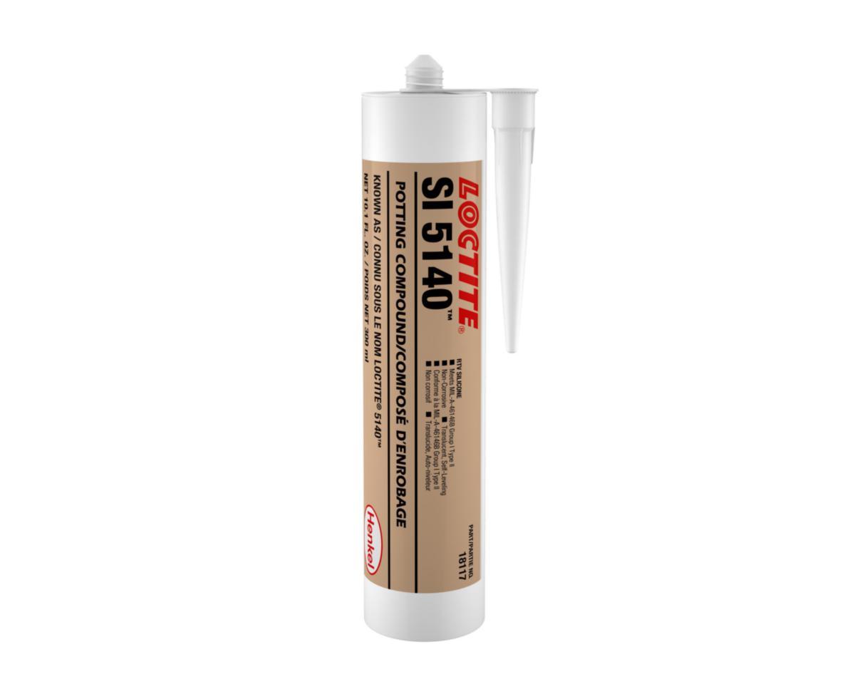 LOCTITE® SI 5140 är en genomskinlig till mjölkvit, trögflytande, alkoxisilikoningjutningsmassa och tätningsvätska. Produkten är lämplig för olika elektroniska, militära och industriella komponenter. Den står emot väder, fukt och ozon. LOCTITE® SI 5140 är också icke-korrosiv och självutjämnande, och förbättrar de lastbärande och stötdämpande egenskaperna hos bindningsområdet. TEKNISK INFORMATION: Volym: 300 ml, Färg: Mjölkvit, Arbetstemperatur: -55 °C till 180°C, Viskositet: 85 Pa·S.