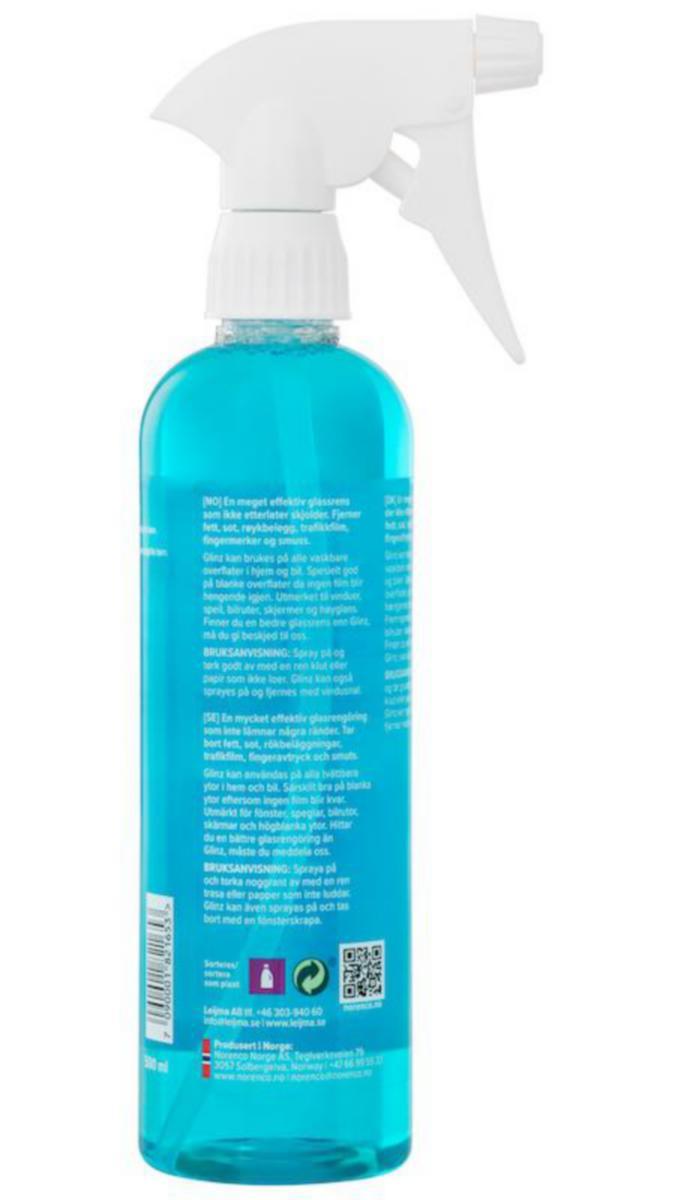 En mycket effektiv glasrengöring som inte lämnar några ränder. Tar bort fett, sot, rökbeläggningar, trafikfilm, fingeravtryck och smuts. Glinz kan användas på alla tvättbara ytor i hem och bil. Särskilt bra på blanka ytor eftersom ingen film blir kvar. Utmärkt för fönster, speglar, bilrutor, skärmar högblanka ytor m.m