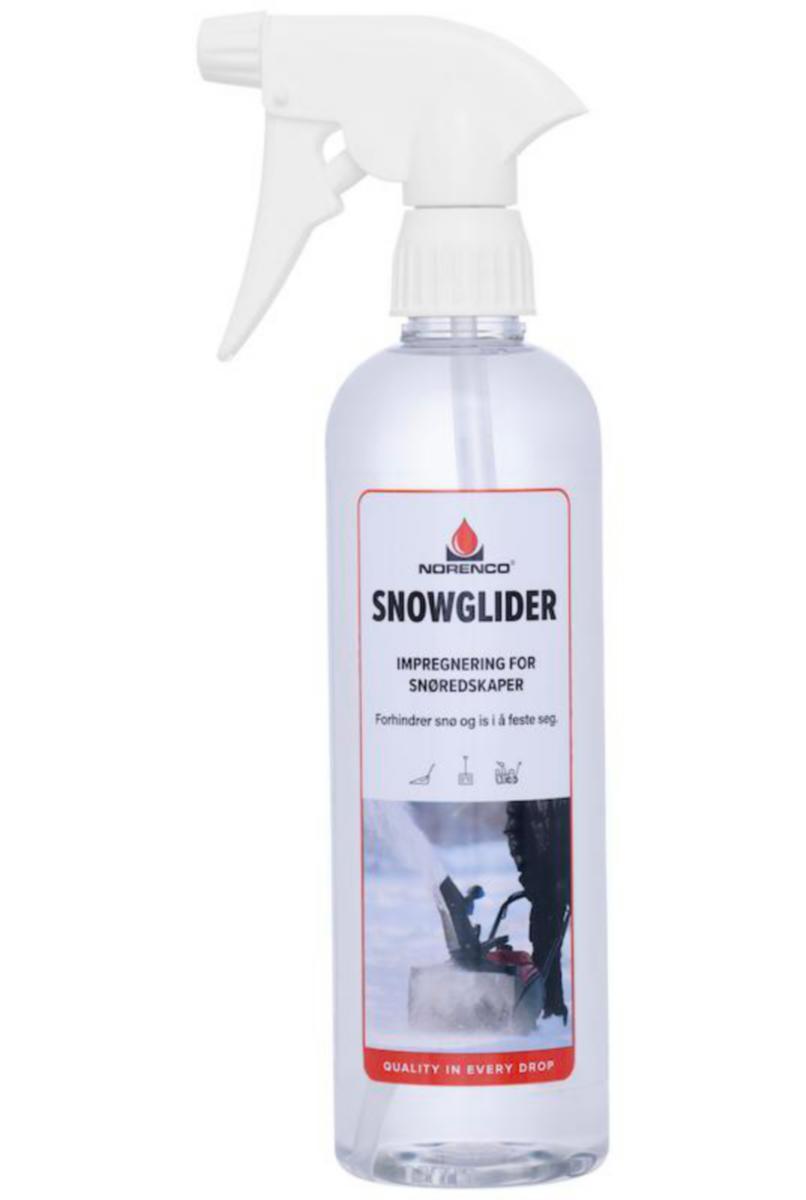 Snowglider gör att snö och is inte fastnar i snöslungor, snöskyfflar, spadar, plogar, trafikskyltar m.m. Genom att spraya Snowglider i utkastet på snöslungan kastas snön betydligt längre. Den fungerar även bra under snöskyfflar för bättre glid, samt andra ytor där man vill ha en glatt yta. Undvik att spraya på däck, golv, och andra ytor som inte ska bli hala. BRUKSANVISNING: Se till att redskapet som ska impregneras är torrt. Spraya på önskat redskap och vänta 2-3 minuter innan användning. Snowglider är slitstark och håller i minst 6 timmars kontinuerlig användning. Om redskapet används mer sällan räcker en behandling hela vintern.