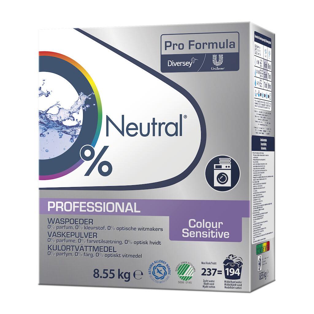 Neutral Colour Sensitive är ett tvättpulver för färgade tyger, som ger en professionell rengöring och tvättkraft. Det är fritt från parfym, färgämnen och optiska vitmedel. Den är Svanenmärkt och rekommenderas av Astma & Allergiförbundet.