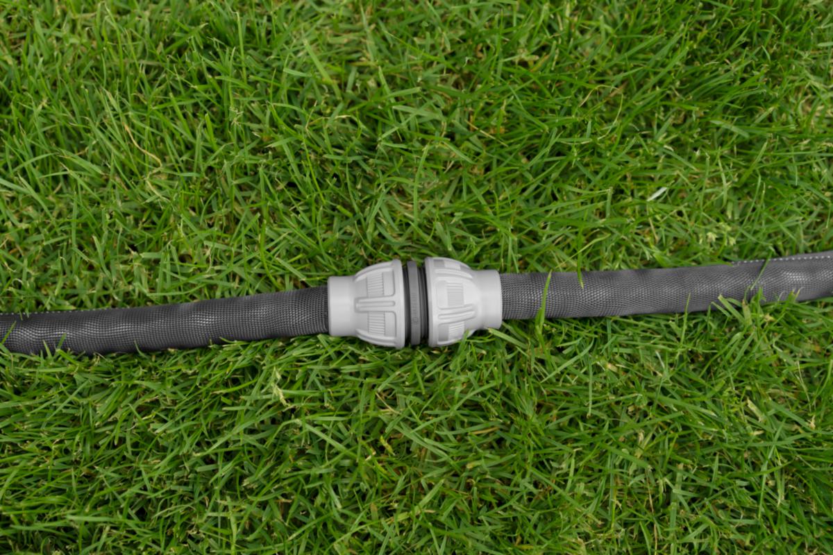Textilslangsreparatören Reparator Liano™ 1/2" från GARDENA hjälper dig att reparera din Liano™ med en diameter på 13 mm (1/2") med bara några få steg. Den är också idealisk för att ansluta två Liano™-slangar till varandra. Reparatören används om din Liano™ har skadats, till exempel av en robotgräsklippare. På så sätt främjar du hållbarhet när du reparerar din slang och fortsätter att använda den i stället för att slänga den. Du behöver inga andra verktyg än en standardsax för reparationen och varje steg förklaras i de detaljerade instruktionerna. Använd först saxen för att klippa ut den skadade delen av Liano™. Sedan sätter du in reparatören och klämmuttern och ser till att de två ändarna av slangen sitter stadigt ihop. Anslutningen är pålitlig och tät igen. Din Liano™-slang är redo för nästa användning. Den UV- och frostbeständiga reparatören kan stå kvar i trädgården året runt