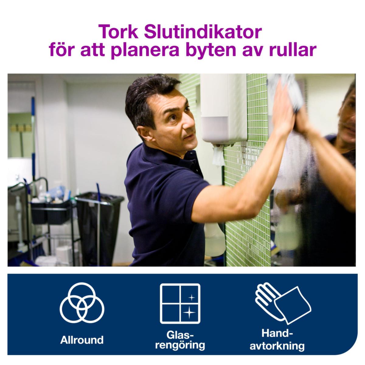 Allroundpapper för diverse arbetsmiljöer med bra absorbtion. Lämplig för storförbrukare. Centrummatning gör att det går snabbt och enkelt att byta rulle.
