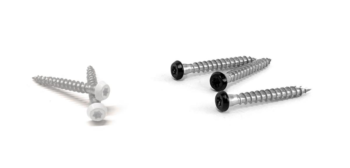 Ankarskruv med svart eller vitt skruvhuvud vilket passa till Jomas beslagsserie Black & white.