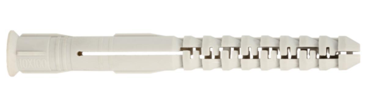 Fasadplugg (endast plugg) av nylon. Lång för att klara av olika material och applikationer. Kan användas både i hårda massiva material (betong/tegel) och i porösa grundmaterial som lättbetong (AEROC/YTONG/SIPOREX) och Lecasten samt i håltegel och betonghålsten. Lämpar sig utmärkt för att sätta fast tjocka fixturer som karmar och träreglar.