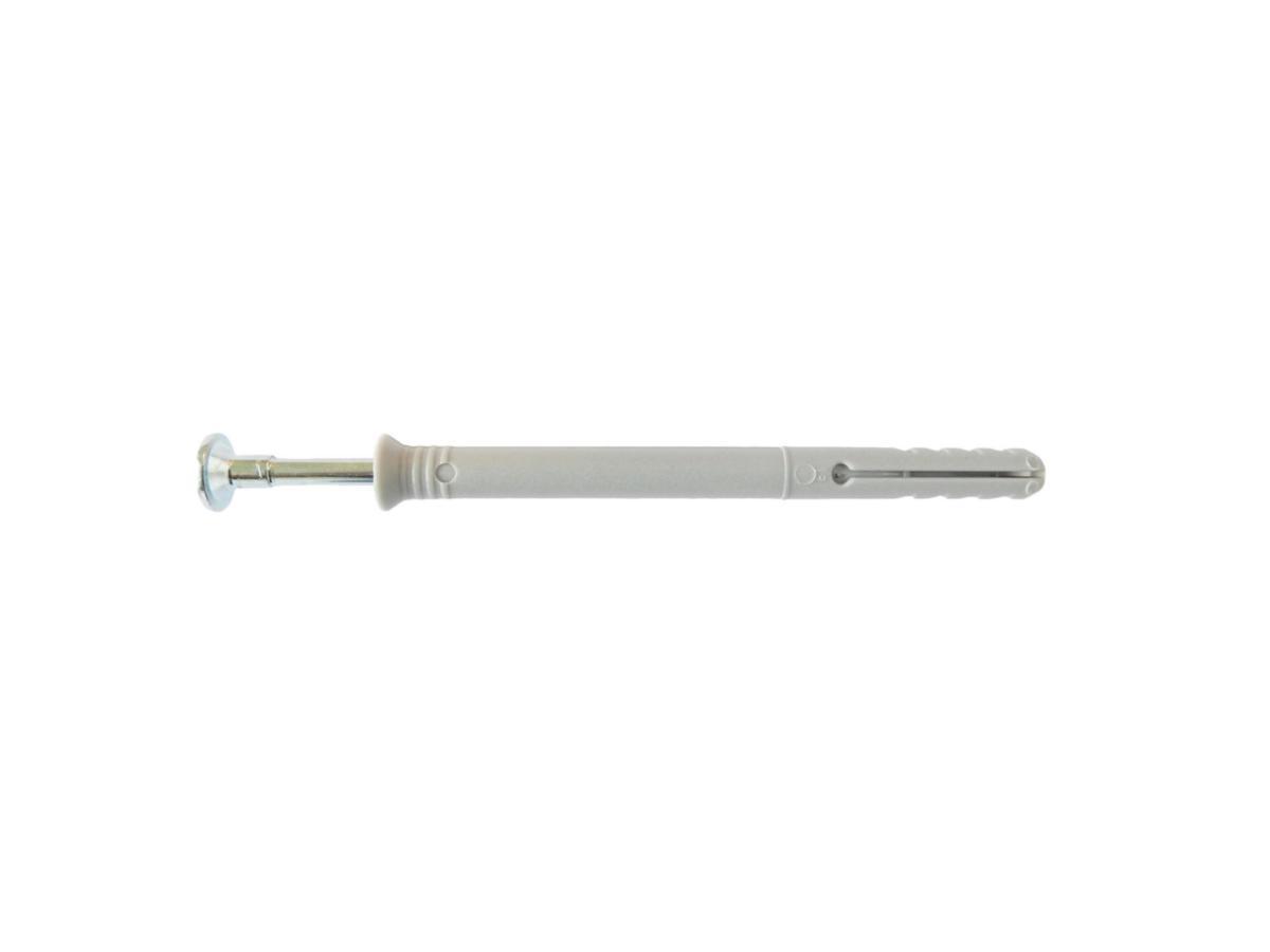Nylonplugg med försänkt krage och förzinkad spik med pozidrive skalle. Färdig att montera lätta infästningar i hårda grundmaterial som betong, tegel etc.