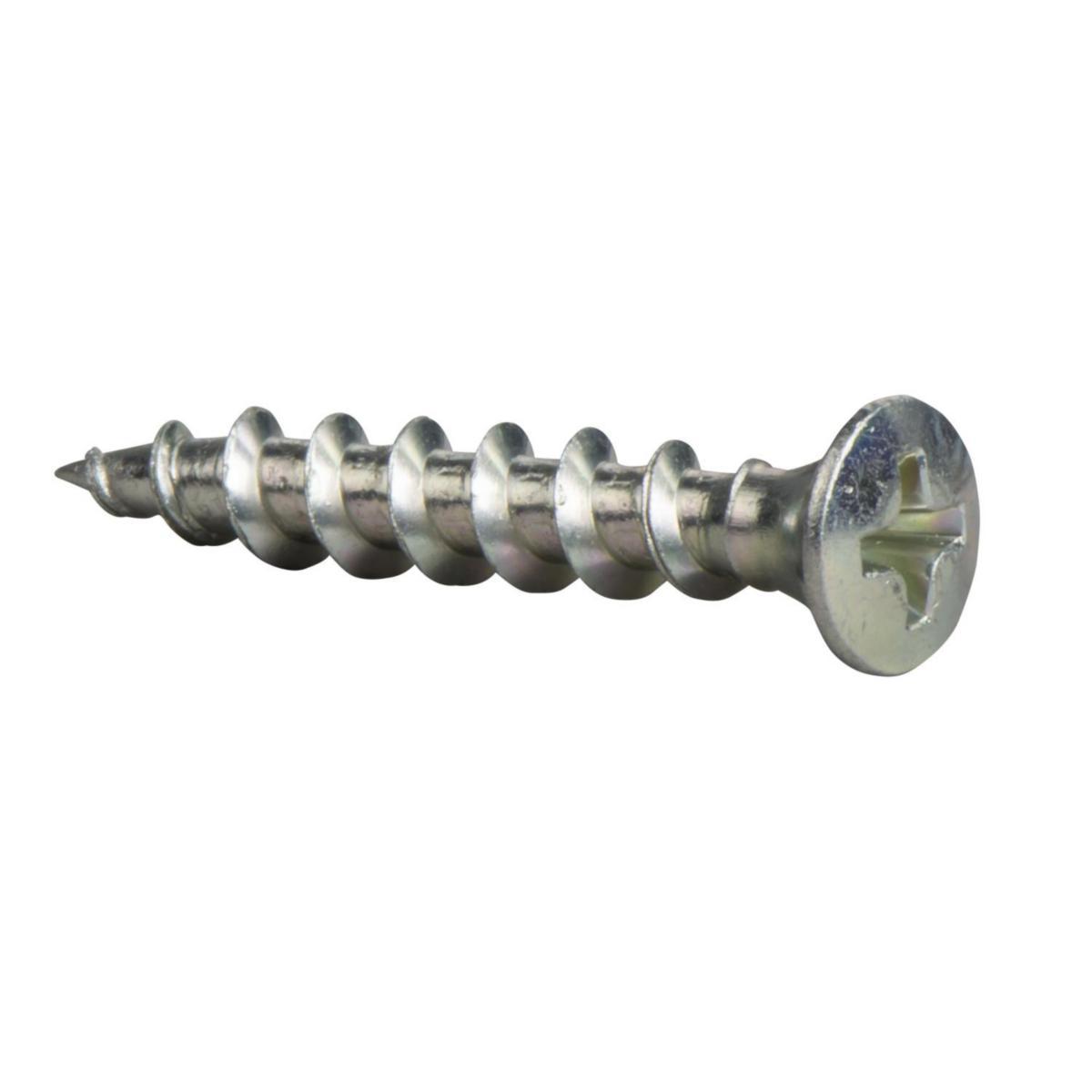 Monteringsskruv TMP, PH2-huvud. Skruven kan monteras direkt i 4,0 mm förborrade hål i betong eller tegel, utan plugg. Tillverkad av härdat stål med en ytbeläggning av järn/zink för att klara korrosivitetsklass C3.