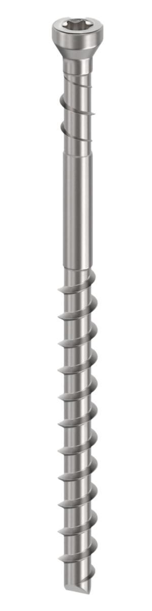 Djupt T15 TX-spår ger kraftigt bitsgrepp och bekvämt montage. Minskar risken för att slira i greppet vid skruvning och skyddar ytbehandligen på skruven. Den reverserande övre gängan drar de materielen tätt i samman och ger rent och snyggt ingångshål. Gängans utformning ger överlägsen bärförmåga genom optimerat förhållande mellan gänga och diameter. Rostfritt stål 316SS (A4).