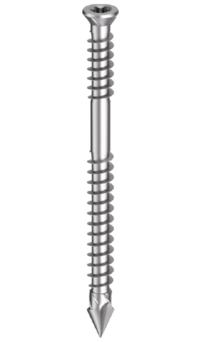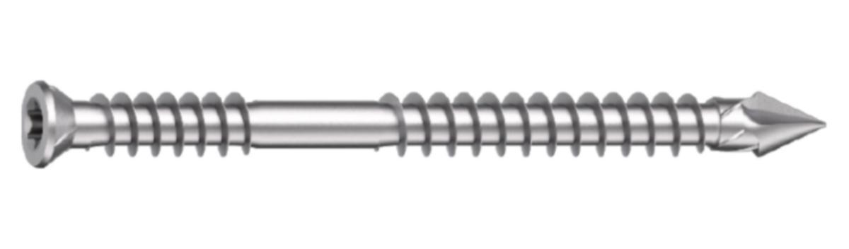 Trallskruv Pondus® har 2 gängdelar med olika gängstigning som pressar ner trallen mot underlaget och håller fast vid rörelser i materialen. Det minimala cylindriska huvudet ger trallen en fin finish. PONDUS i syrafast rostfritt stål A4 är designad och skapad för att montera trallvirke i exklusiva hårda träsorter som teak, cumaru m fl med stora rörelser. Förborrning med Ø 3,5 mm rekommenderas i hårda träslag.