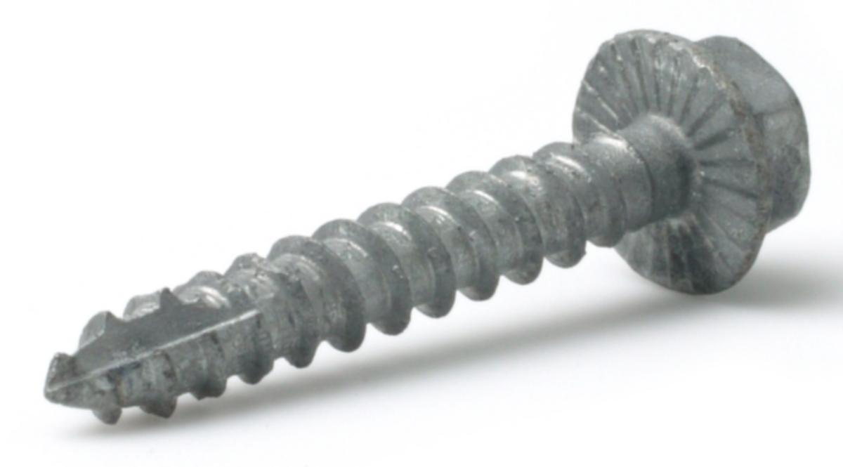 Trägänga med cutterspets. Sexkantskruv med fläns och rillor under huvudet. Stål 8,8 varmförzinkad.
